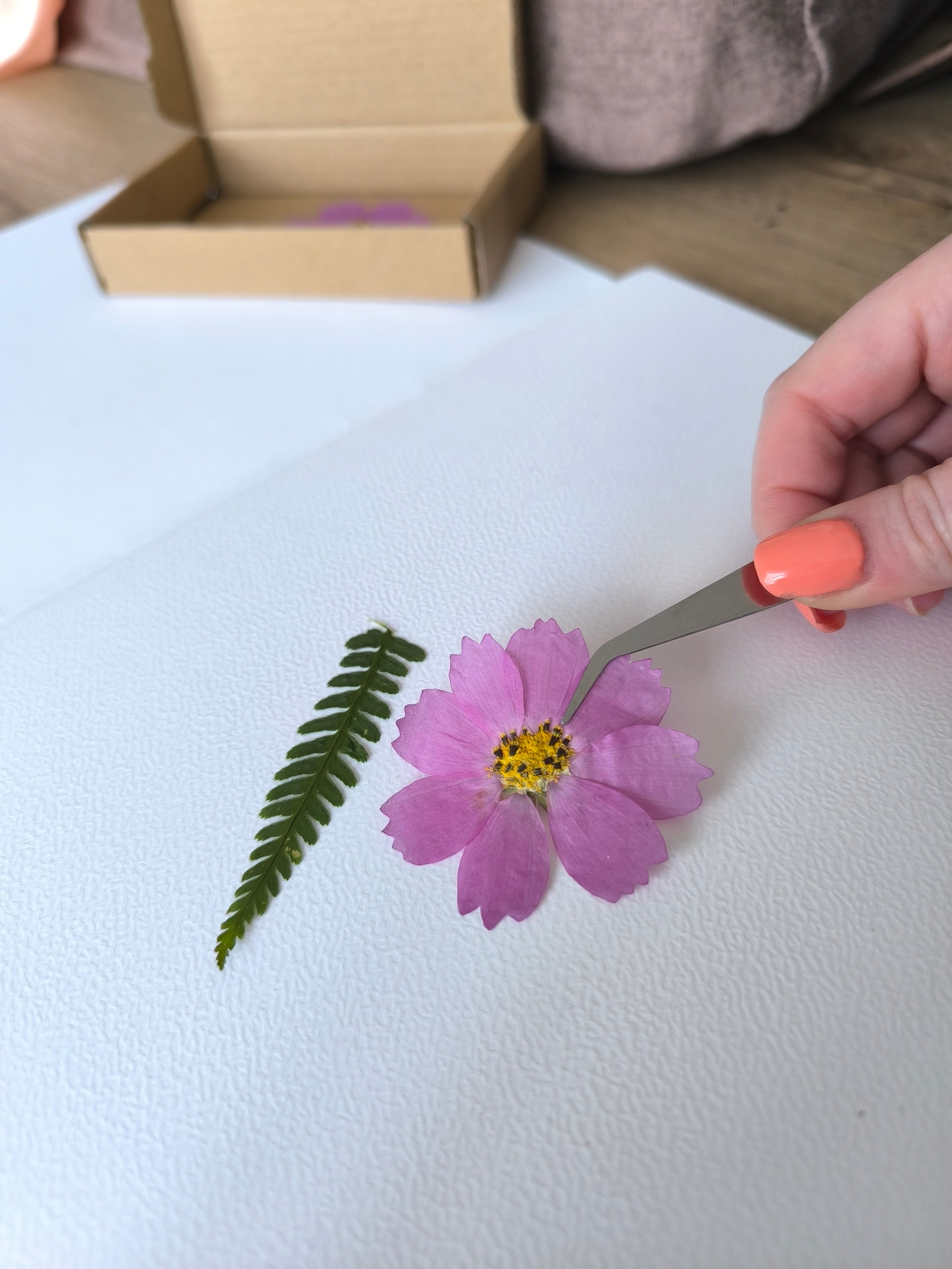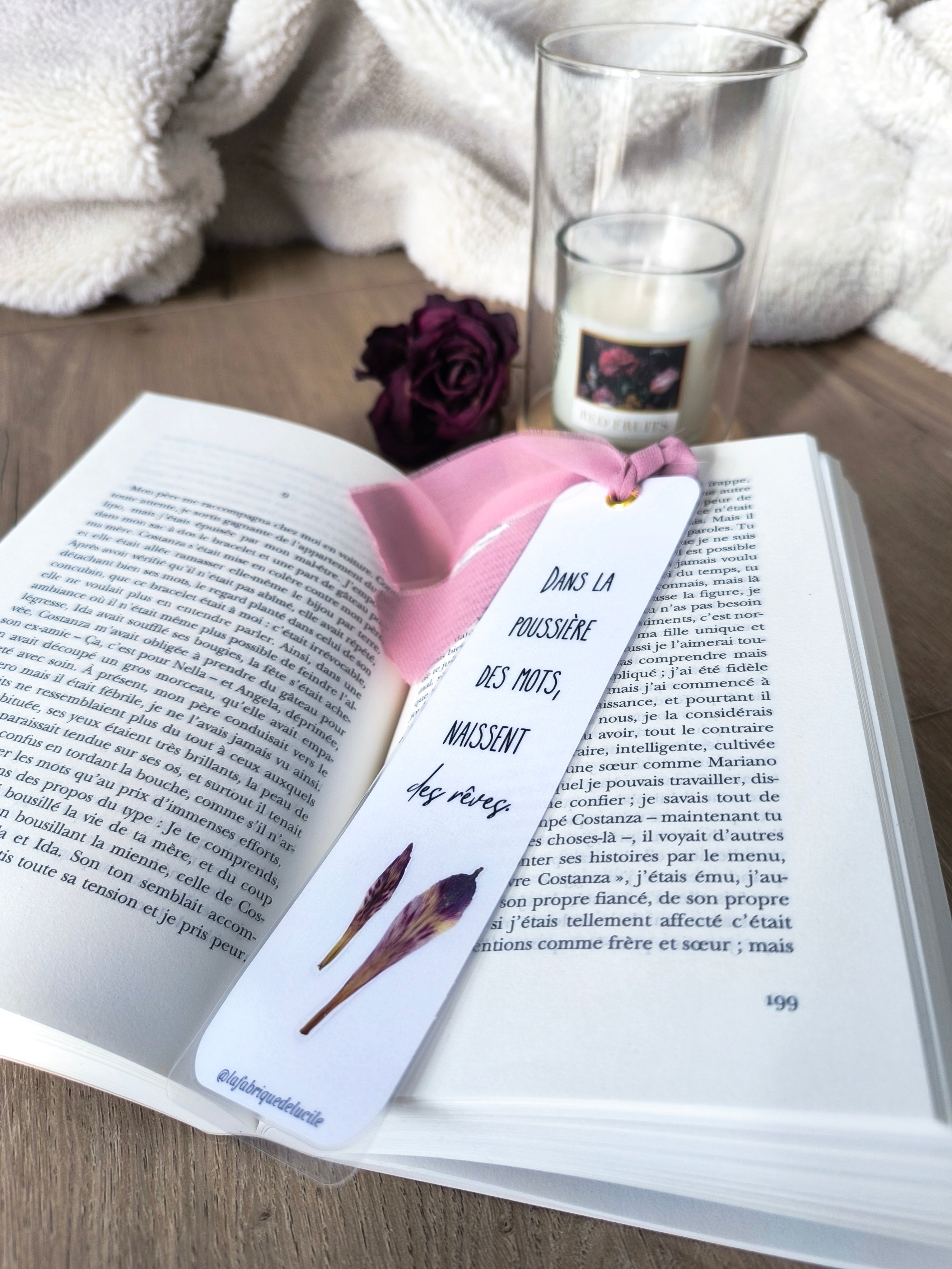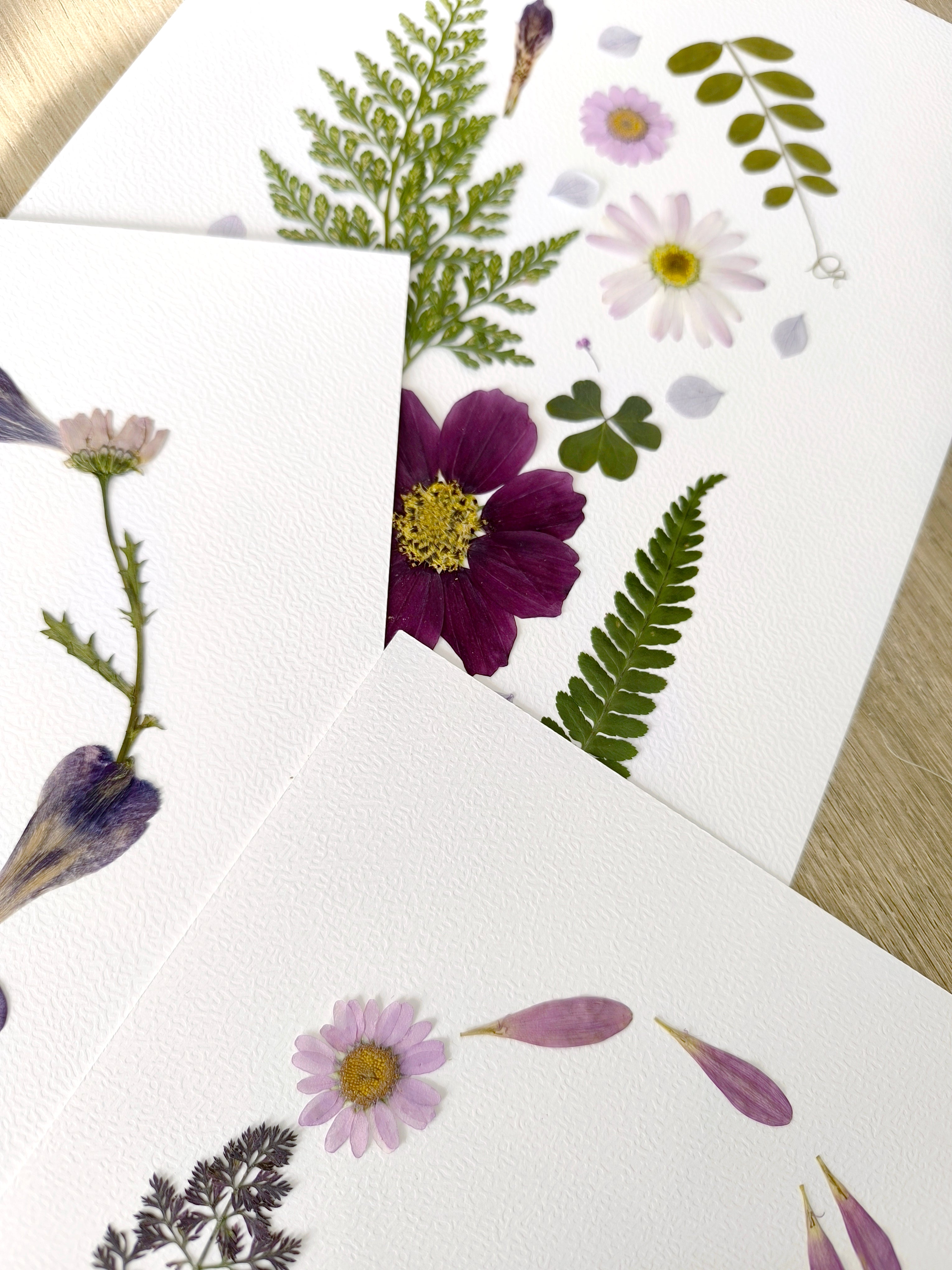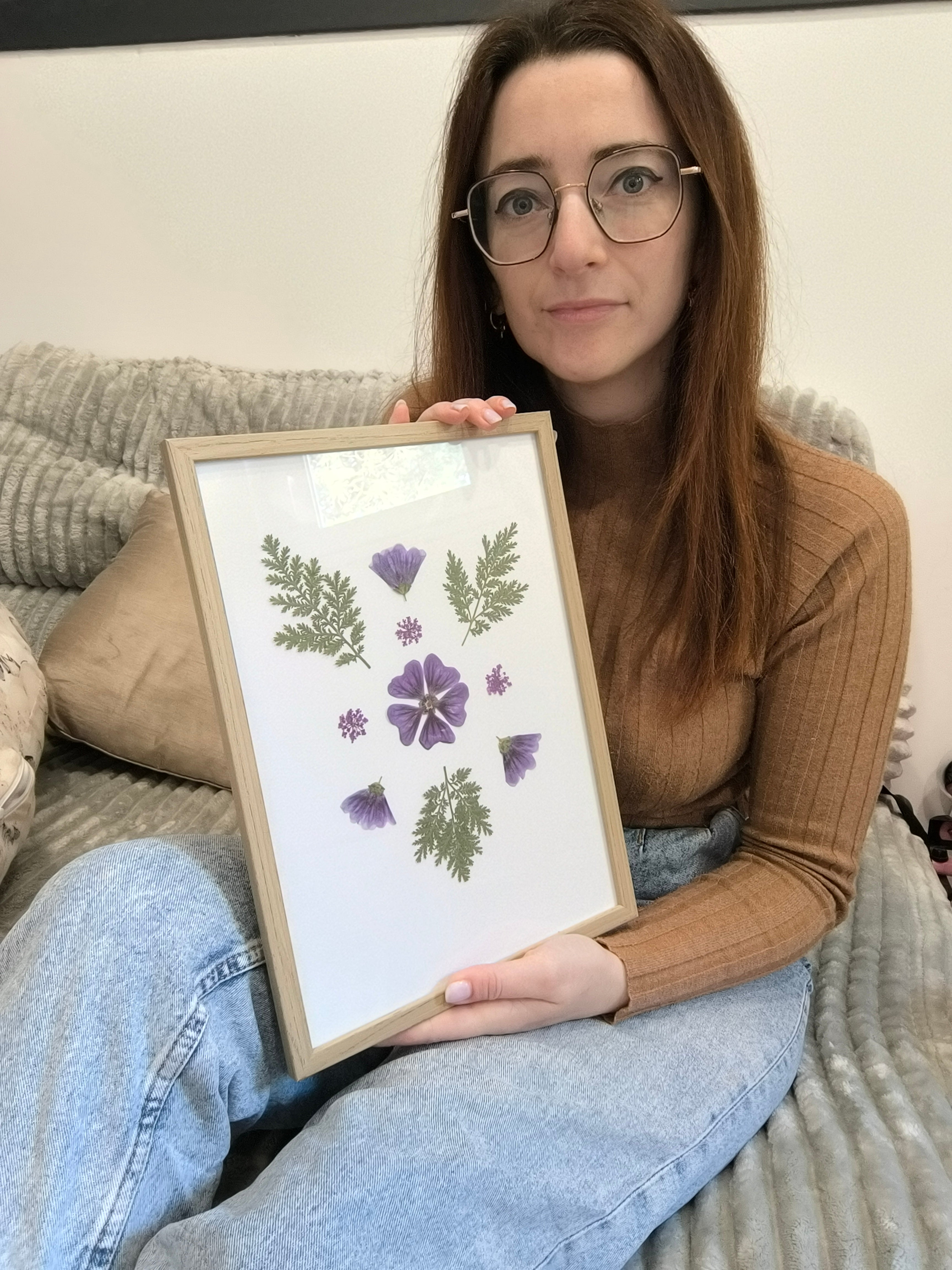 Créations florales artisanales (Herbiers, marques pages), réalisées à la main à partir de fleurs séchées et pressées.