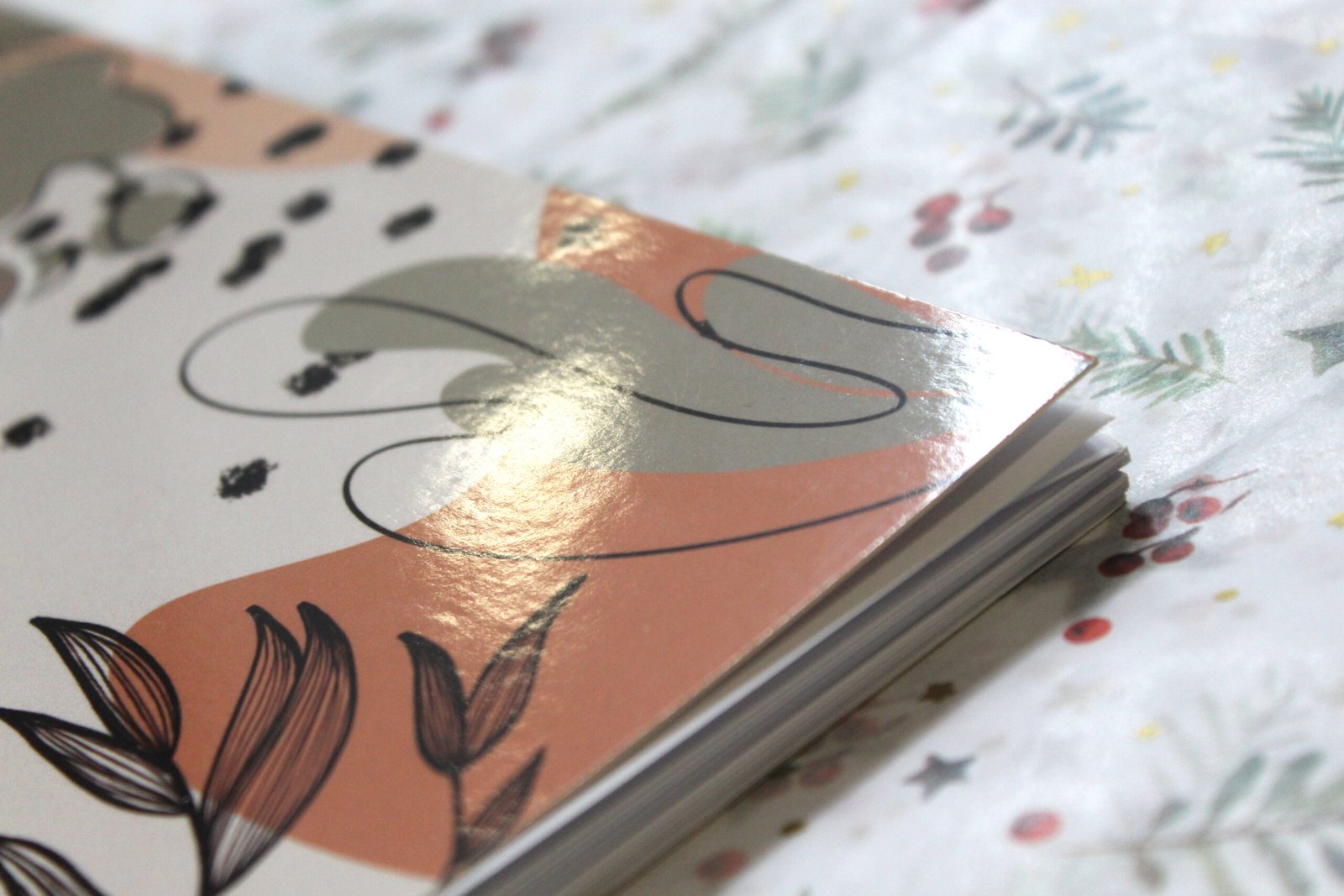 ✅ Couverture : Mi-rigide mi-souple, finition brillante (carton)