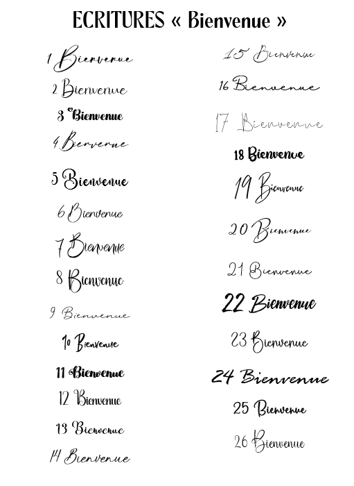 Design unique : Nous créons un sticker “Bienvenue” adapté à votre thème et vos couleurs de mariage. Choisissez parmi une gamme de polices et de styles (minimaliste, calligraphique, moderne, etc.).